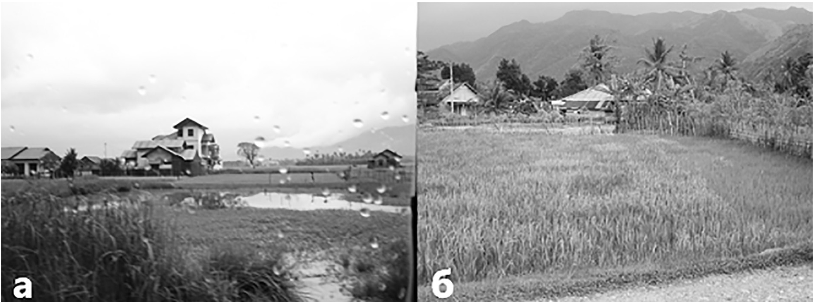 Рис. 5. Места выплода комаров An. Sundaicus: а – заболоченности, возникающие в сезон дождей; б – рисовые чеки