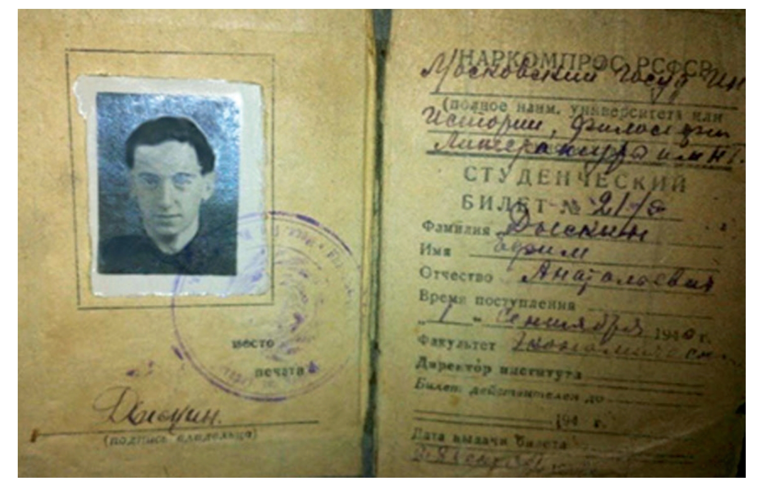 Рис. 3. Студенческий билет Е.А. Дыскина (1940)