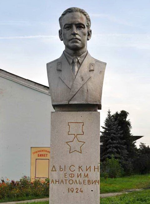 В г. Почеп Брянской области установлен бюст Героя Советского Союза Ефима Анатольевича Дыскина (рис. 9). Необыкновенный подвиг Е.А. Дыскина во время Великой Отечественной войны, его огромный вклад в развитие военной медицины и преданность ВМА являются одним из ярчайших примеров беззаветного служения Родине.