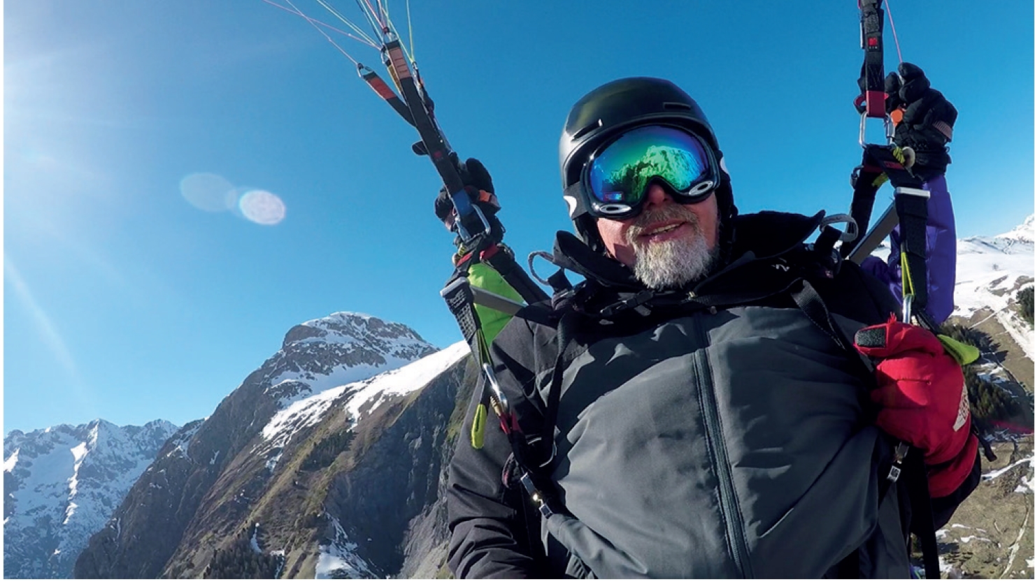 Юбиляр – увлеченный и любознательный человек. У него много увлечений: горные лыжи (ежегодно со всей семьей Сергей Васильевич выезжает в Альпы, где на горные лыжи встают практически все, включая старшую 5-летнюю внучку Аню). В последний раз спуски по трассам дополнились полётом в горах на параплане (рис. 3).