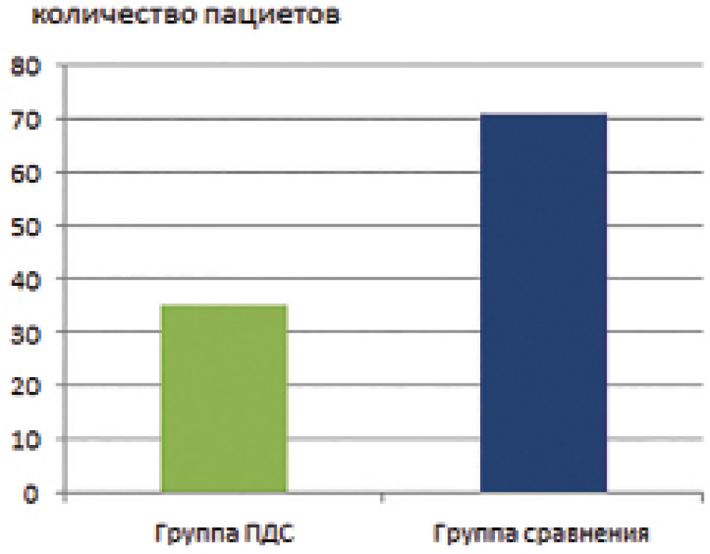 Рис. 2. Распределение пациентов на группы в зависимости от наличия критериев ПДС