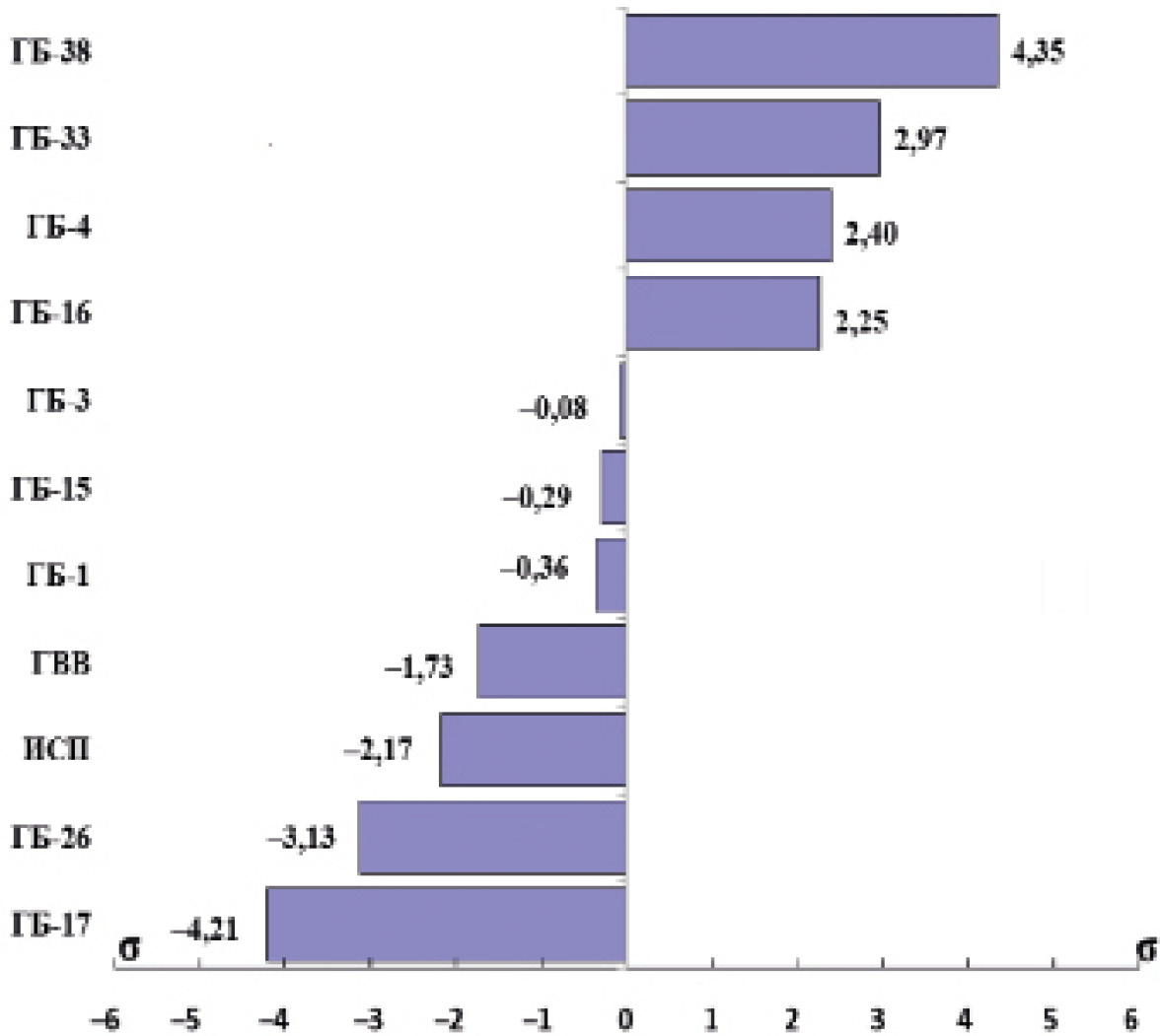 ГБ-17 ГБ-26 ИСП ГВВ ГБ-1 ГБ-15 Б-3 ГБ-16 ГБ-4 ГБ-33 ГБ-38 | 0,50 0,61 1,15 1,24 1,45 1,42 1,39 2,10 2,10 2,00 2,35 | 0,05 0,17 0,25 0,06 0,30 0,53 0,44 0,65 0,25 0,94 1,10 | 0,35 0,56 0,50 0,82 0,95 0,74 0,94 1,15 1,65 1,17 1,30 |