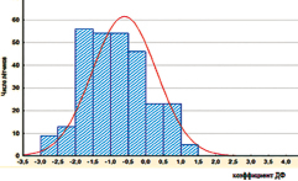Рис. 1. Распределение лётчиков ОГ по коэффициентам ДФ