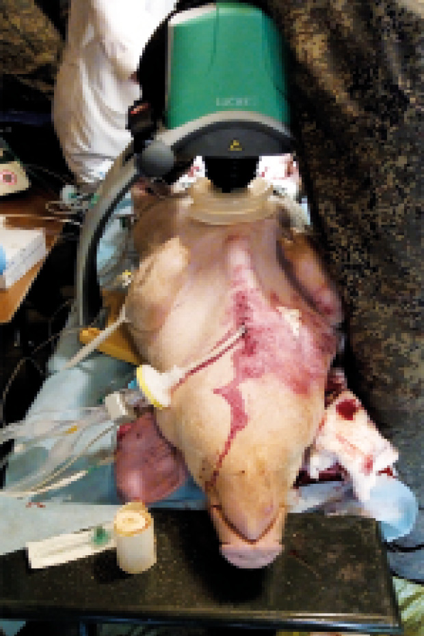 Рис. 5. Применение аппарата «Лукас 2» в ходе медицинской эвакуации экспериментального животного