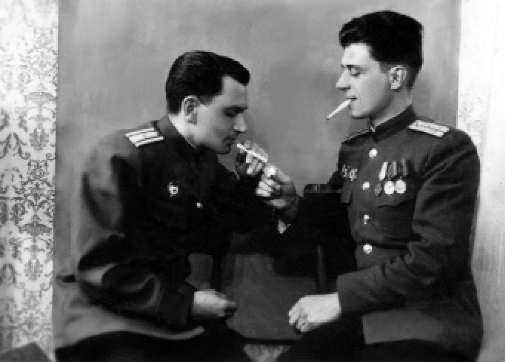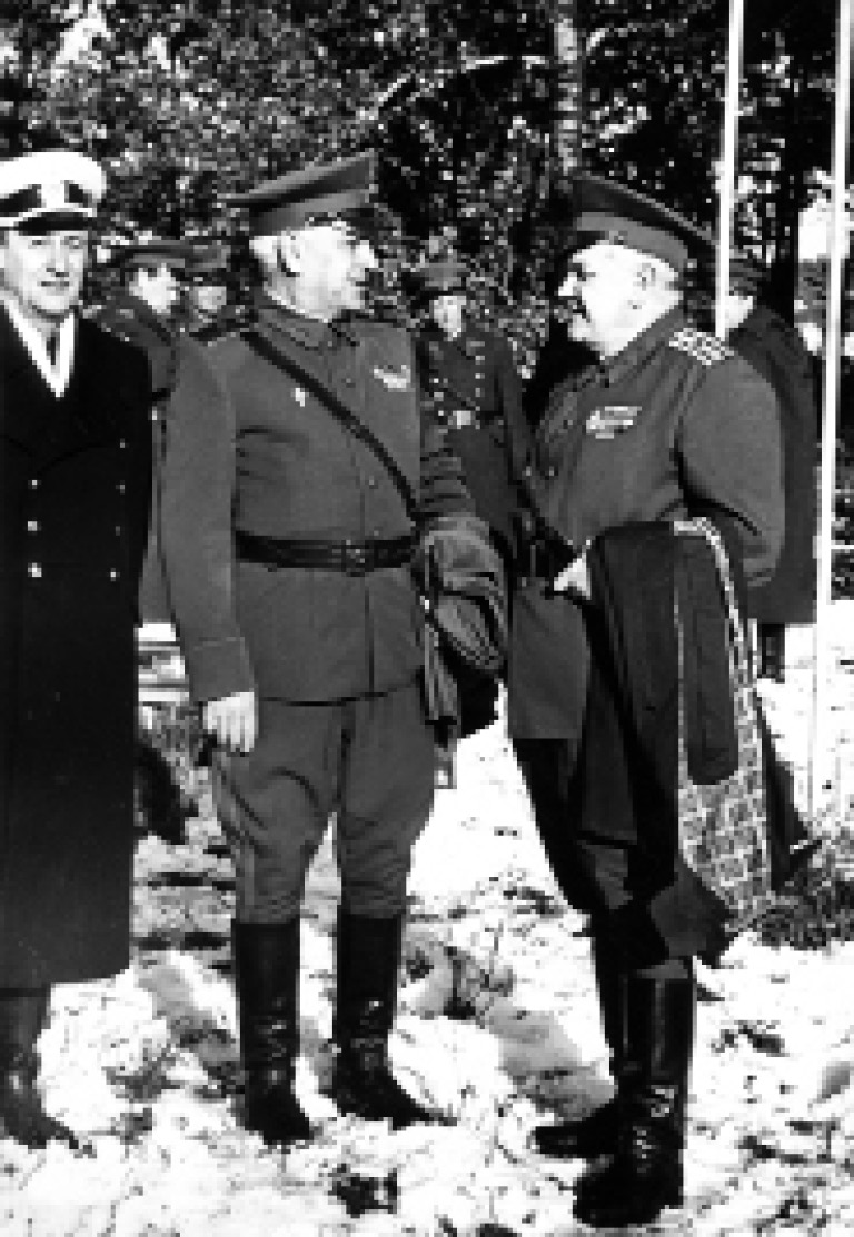 Рис. 5. Начальник кафедры ВПХ ВМА профессор И.И. Дерябин на полевых учениях с начальником кафедры организации и тактики медицинской службы профессором О.С. Лобастовым (справа) и начальником кафедры военной токсикологии Н.В. Саватеевым