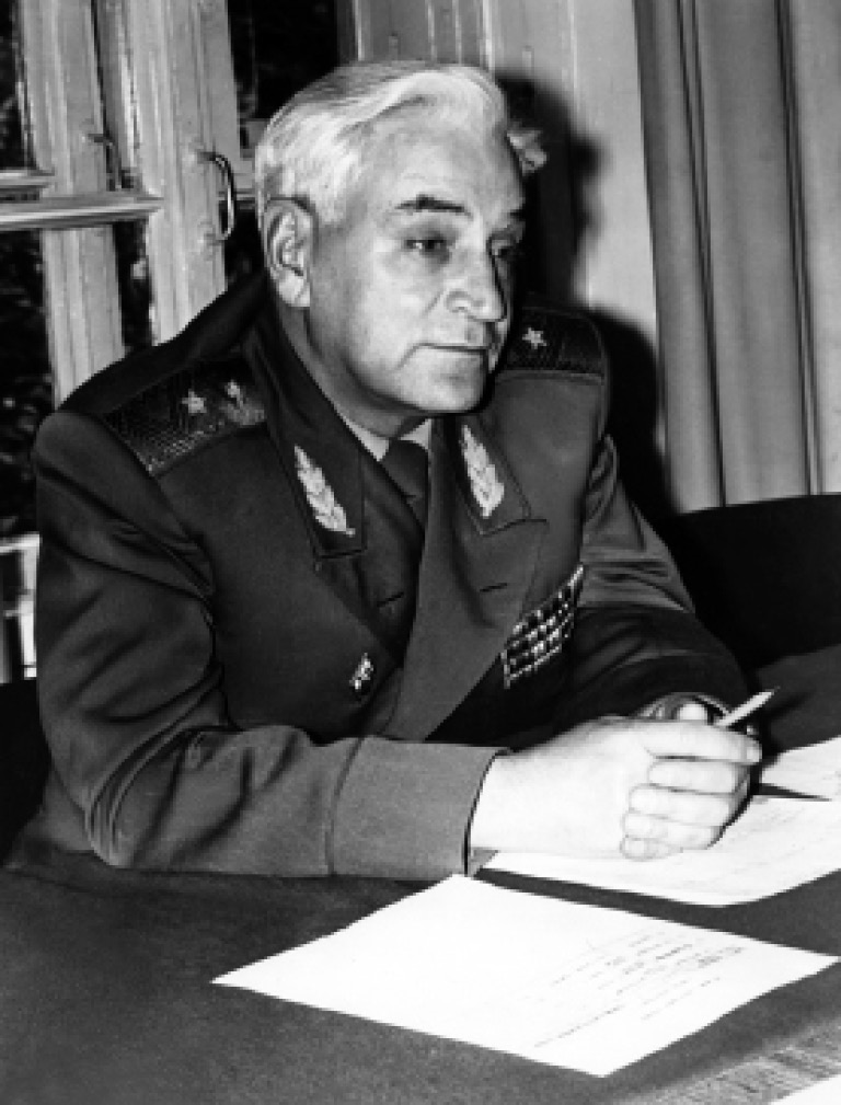 В 1965 г. полковник медицинской службы И.И. Дерябин получает назначение на должность главного хирурга Группы советских войск в Германии (ГСВГ). Это была более чем миллионная группировка войск, развернутая на передних рубежах противостояния с армиями блока Североатлантического альянса, в госпиталях и медсанбатах которой насчитывалось более 400 хирургов. Напряженная боевая подготовка, большая лечебная работа по обслуживанию военно-служащих и их семей, постоянная ротация хирургических кадров, организация профессиональной учебы личного состава и сотни других задач должен был решать главный хирург ГСВГ. И.И. Дерябин проводит показательные операции, читает лекции, организует конференции по обмену опытом. Это были годы становления новой клинической дисциплины – анестезиологии и реаниматологии. Илья Иванович стремится открывать отделения интенсивной терапии в крупных госпиталях ГСВГ. Впервые в госпиталях группы войск были созданы стационарный центр и подвижные отделения гемодиализа, отработана система экстренной специализированной медицинской помощи при остром почечном повреждении (острой почечной недостаточности). У И.И. Дерябина складываются хорошие деловые отношения с главным хирургом Советской армии генерал-полковником медицинской службы академиком А.А. Вишневским. Именно по его рекомендации в 1968 г. профессор И.И. Дерябин был назначен начальником кафедры военно-полевой хирургии создающегося военно-медицинского факультета при Центральном институте усовершенствования врачей (ЦИУВ) в Москве. Одновременно на него были возложены обязанности нештатного заместителя главного хирурга Советской армии (рис. 3).