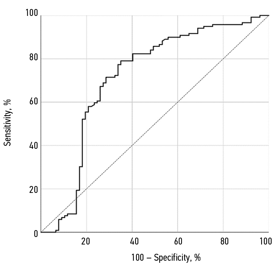 Рис. 3. Графический результат ROC-анализа для диагностики саркопении с помощью миостатина