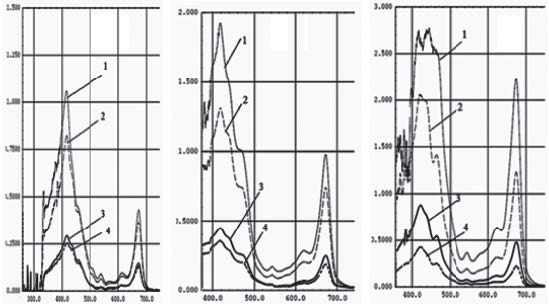 Расчет содержания каротиноидов и хлорофиллов при совместном присутствии проводили в соответствии с литературными данными [7, 9–11].