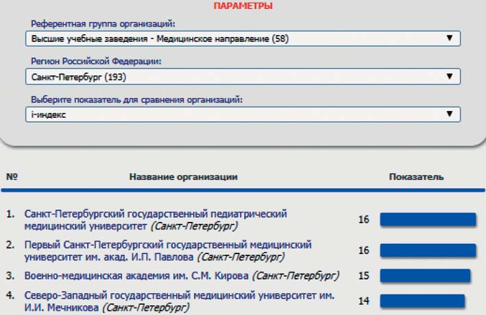 Рис. Пример сравнения по i-индексу в референтной группе медицинских вузов Санкт-Петербурга