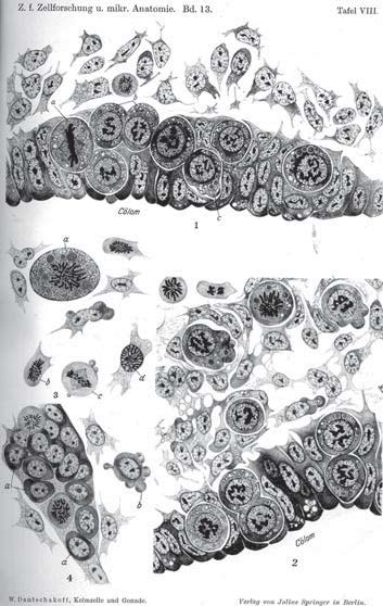 - Dantschakoff, V. Keimzelle und Gonade. IA. Von der entodermalen Wanderzelle bis zur Urkeimzelle in der Gonade / V. Dantschakoff // Zellforschung u. mikr. Anatomie. – 1931. – Bd. 13, 3 Heft, P. 448–510.
