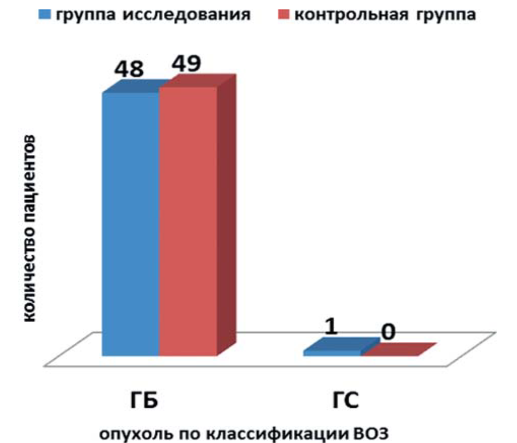 Рис. 2. Распределение больных в подгруппе Grade IV по классификации ВОЗ: ГС – глиосаркома, ГБ – глиобластома