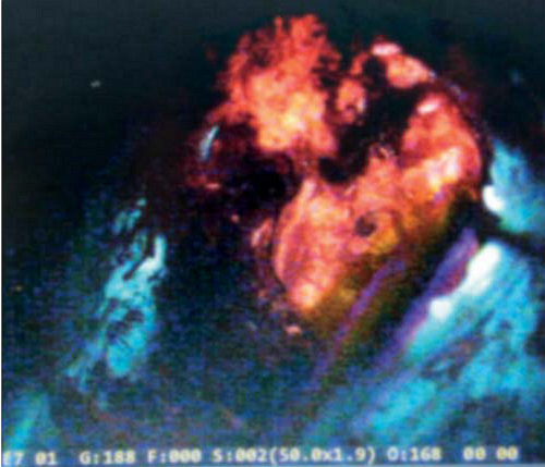 Больному во время нахождения на операционном столе после вводного наркоза за 1,5 – 2 ч до предполагаемой резекции опухоли однократно вводился препарат фотодитазин в виде внутривенной капельной инфузии в течение 30 мин в дозе 1 мг/кг массы тела больного, разведенный в 200 мл физиологического раствора. Флакон физиологического раствора с разведенным препаратом оборачивают непрозрачным материалом.