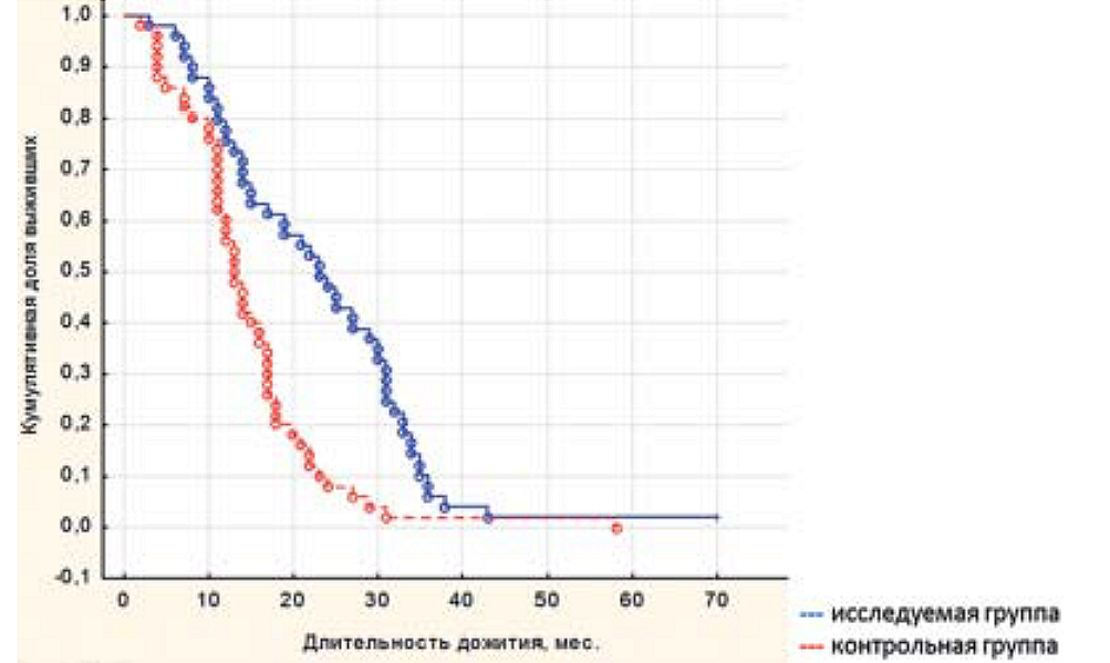 Пациенты исследуемых и контрольных групп были сопоставимы по полу, возрасту, размеру опухоли, индексу Карновского до операции, а также степени радикальности резекции опухоли.