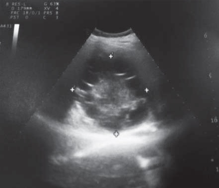 Рис. 1. УЗ-картина многокамерной эхинококковой кисты (диаметр 10 см)