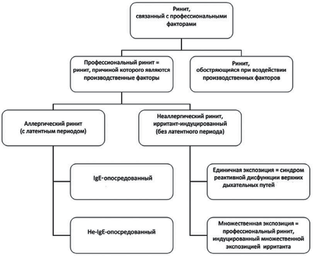 Рис. 1. Классификация ринитов, связанных с профессиональными факторами