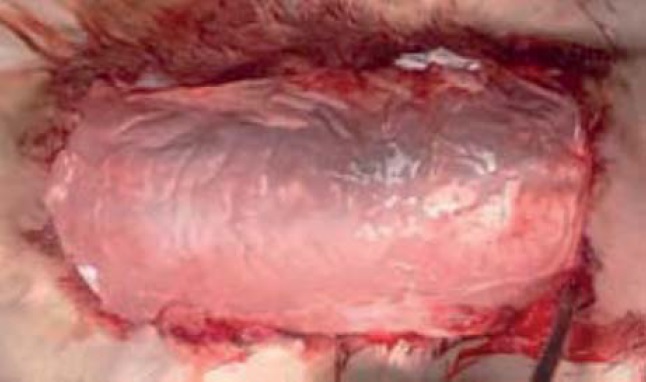 В 3-й группе раневую поверхность замещали раневыми покрытиями на основе гидрогеля гиалуроновой кислоты производства Общества с ограниченной ответственностью ДЖИ-групп (рис. 8). Их дополнительную фиксацию осуществляли кожным клеем «Dermabond» (Германия).