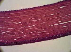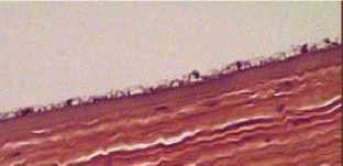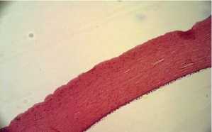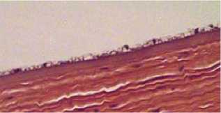 Рис. 2. Роговица глаза через 2 недели после поражения. Передний эпителий роговицы без признаков отслойки от передней пограничной пластинки (боуменовой мембраны).