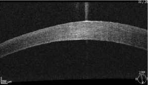 Рис. 4. Линейный гиперрефлективный сигнал в виде демаркационной линии при ОКТ-исследовании роговицы.