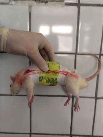 На данном этапе исследований для проведения оценки влияния экспериментальных повязок на петли тонкой кишки при эвентрации была выбрана экспериментальная модель с использованием лабораторных животных (крысы-самцы), наиболее подходящая по анатомическим и физиологическим свойствам для проведения данного рода экспериментов. Исследования проводили в условиях вивария. Животных содержали при температуре окружающей среды +19 +23°С, в проветриваемых помещениях, исключающих возникновение сквозняков.