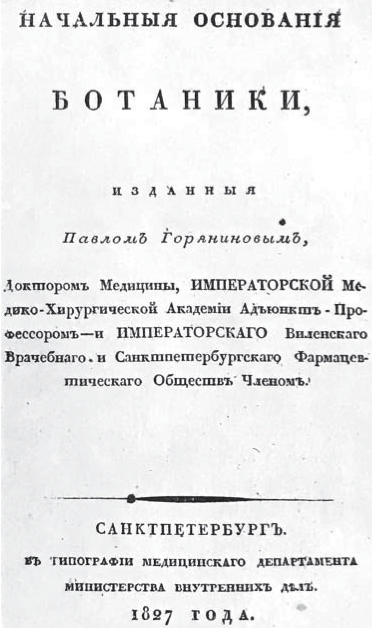 Рис. 2. Титульный лист учебника профессора П.Ф. Горянинова «Начальные основания ботаники» (1827 г.)