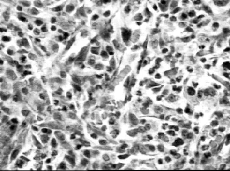 На аутопсии погибших облученных животных пульпа селезенки была темно-красного цвета у 9 (42,9%) животных, пятнистая – у 12(57,1%) крыс. Во всех случаях отмечено увеличение селезенки в размерах, ее масса в 2–2,2 раза превышала физиологическую норму. При разрезе селезенки удавалось получить обильный соскоб. Лимфатические узлы брыжейки кишки в 45% случаев были увеличены в размерах, отечны. У 100% животных слизистая оболочка тонкой кишки была истончена, отмечались множественные изъязвления и петехиальные кровоизлияния, имеющие тенденцию к слиянию. Кровоизлияния в легких были зарегистрированы в 60%, а венозное полнокровие отмечалось в 70% случаев. В полостях сердца и аорте отмечалось небольшое количество крови. Миокард имел дряблый и тусклый вид с кровоизлияниями в эпикард или под эндокард – в 85% случаев в области задней стенки левого желудочка. У 16 (76,2%) крыс было отмечено образование метастатических пиогенных очагов в печени с преимущественно субкапсулярной локализацией. В почках метастатические очаги отмечены лишь в 3 случаях в сочетании с поражением печени. Изолированного метастатического поражения в почках ни в одном случае не выявлено.