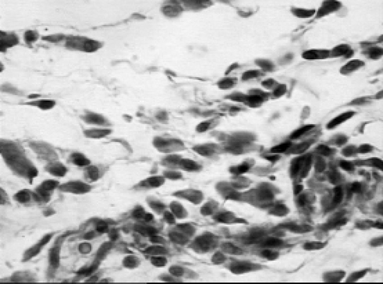 Лучевое воздействие угнетает репаративные процессы в механической ране. В составе инфильтрата преимущественно присутствуют малодифференцированные бластоподобные формы мигрирующих клеток.