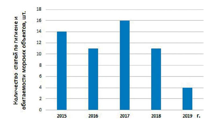 Рис. 3. Количество статей по гигиене и обитаемости, опубликованных в журнале «Морская медицина»