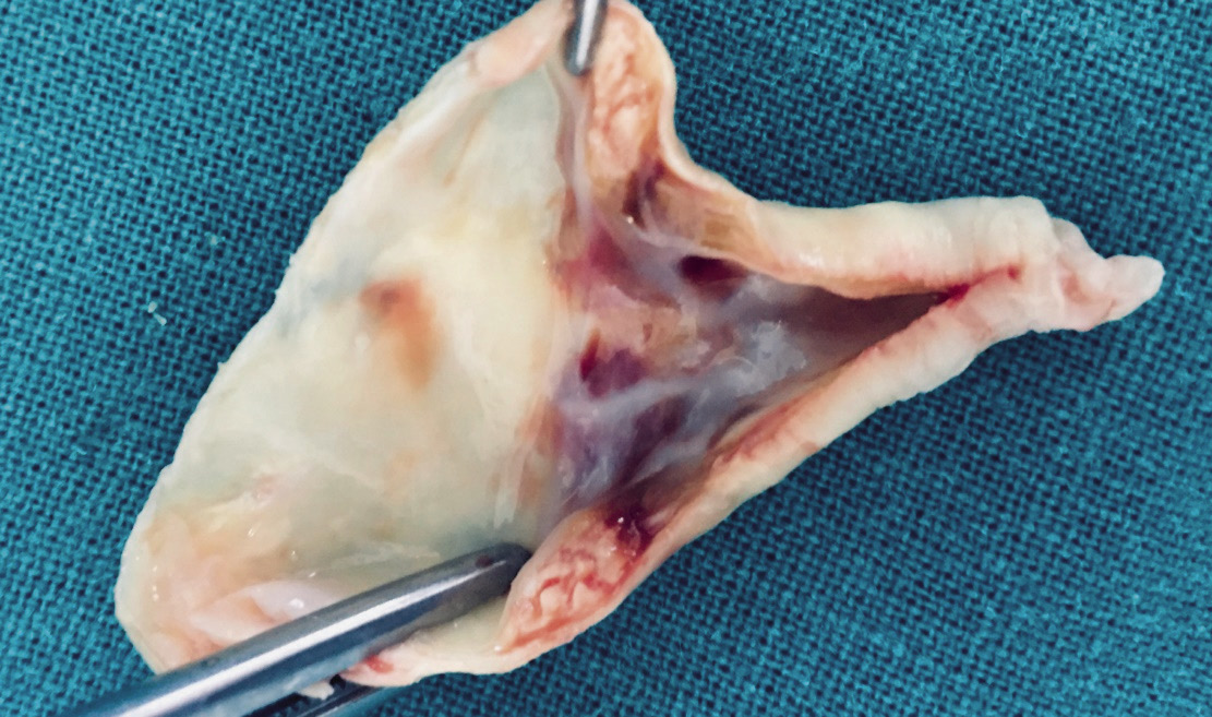 Рис. 1. Полученный операционный материал. Кольцевидный участок интимы артерии с бляшкой