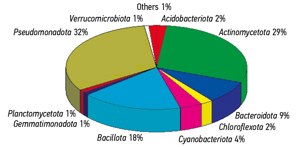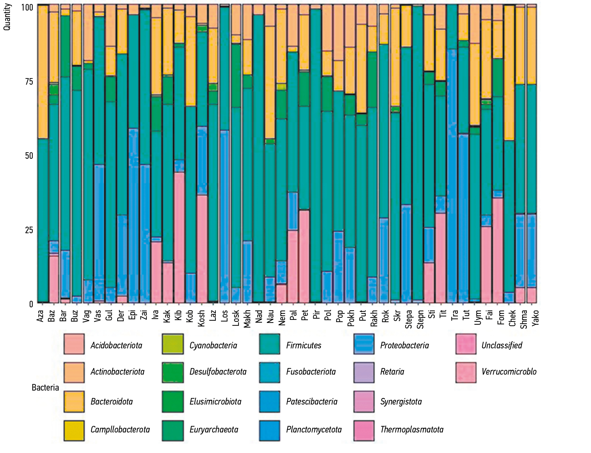 Fig. 4. Relative prevalence of main microbiota phyla in serum samples of patients with multiple musculoskeletal injuries.
