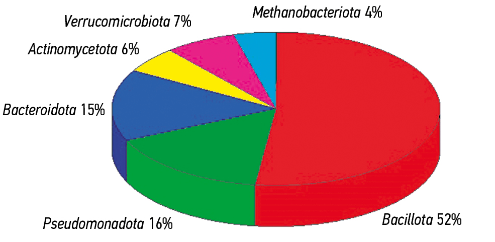 Based on 16S rRNA gene sequencing, the most prevalent phyla in fecal microbiota were Bacillota (synonym: Firmicutes) (52%), Pseudomonadota (synonym: Proteobacteria) (16%), and Bacteroidota (synonym: Bacteroidetes) (15%) (Fig. 3). The most prevalent phyla in serum were Pseudomonadota (synonym: Proteobacteria) (32%), Actinomycetota (synonym: Actinobacteriota) (29%), and Bacillota (synonym: Firmicutes) (18%) (Fig. 4).