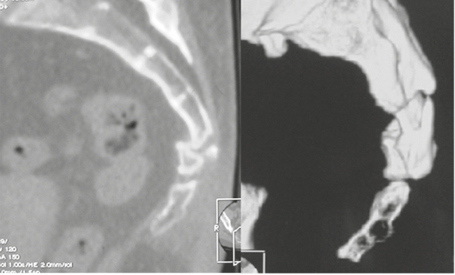 Fig. 2. CT of the sacrum and coccyx of patient M. before surgery