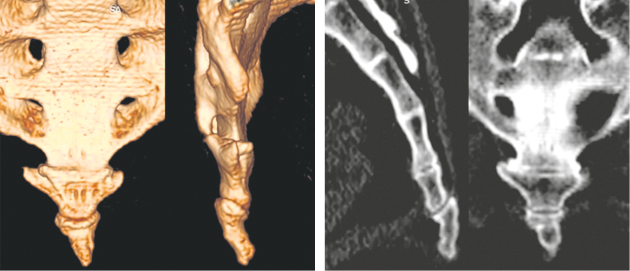 Рис. 4. Компьютерная томография крестца и копчика пациентки Б. до операции