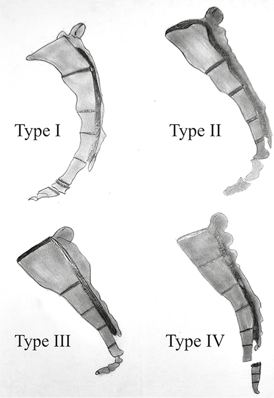 Fig. 9. Types of coccyx according to F. Postacchini and M. Massobrio [21]