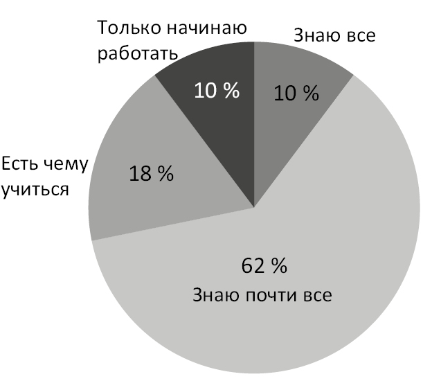 Рис. 2. Распределение участников опроса по самооценке уровня знаний в области фармаконадзора