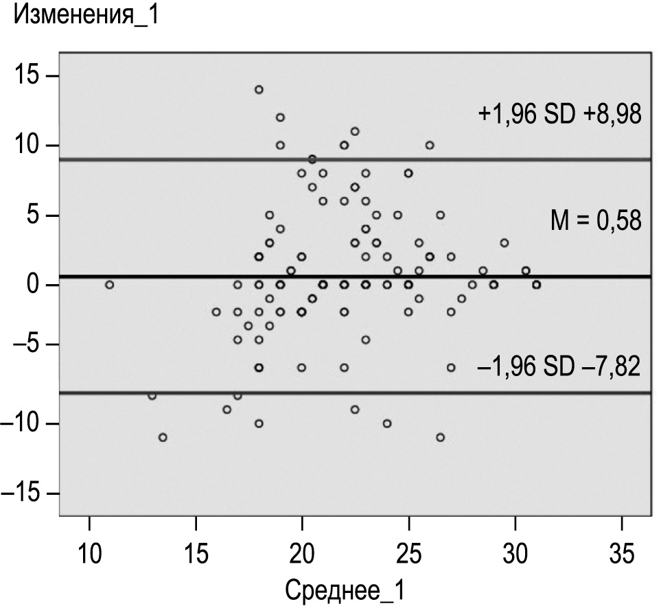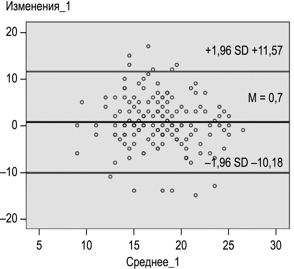 Рис. 3. Диаграмма Блэнда-Алтмана для шкалы «Открытость к изменениям».