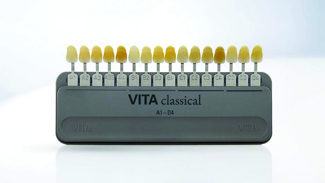 VITA Сlassical: самая популярная расцветка в стоматологии. Современная ее модификация (VITA Classical А1-D4) (от самого яркого до самого темного варианта) имеет 16 базовых цветов, разделенных на четыре группы: A (красновато-коричневые), B (красновато-желтые), C (серые), D (красновато-серые) [7–9] (рис. 1).