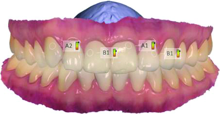 9. Fig. 9. Image from the display of the 3Shape TRIOS scanner after determining the color of the teeth.