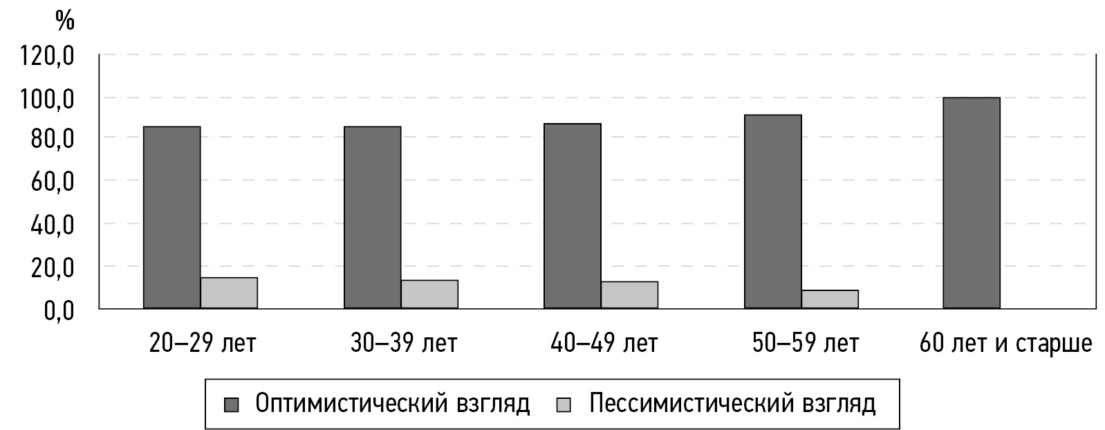 Интересно, что респонденты в возрастной группе старше 50 лет более уверенно смотрят в будущее, нежели родители молодого и среднего возраста (рис. 1).