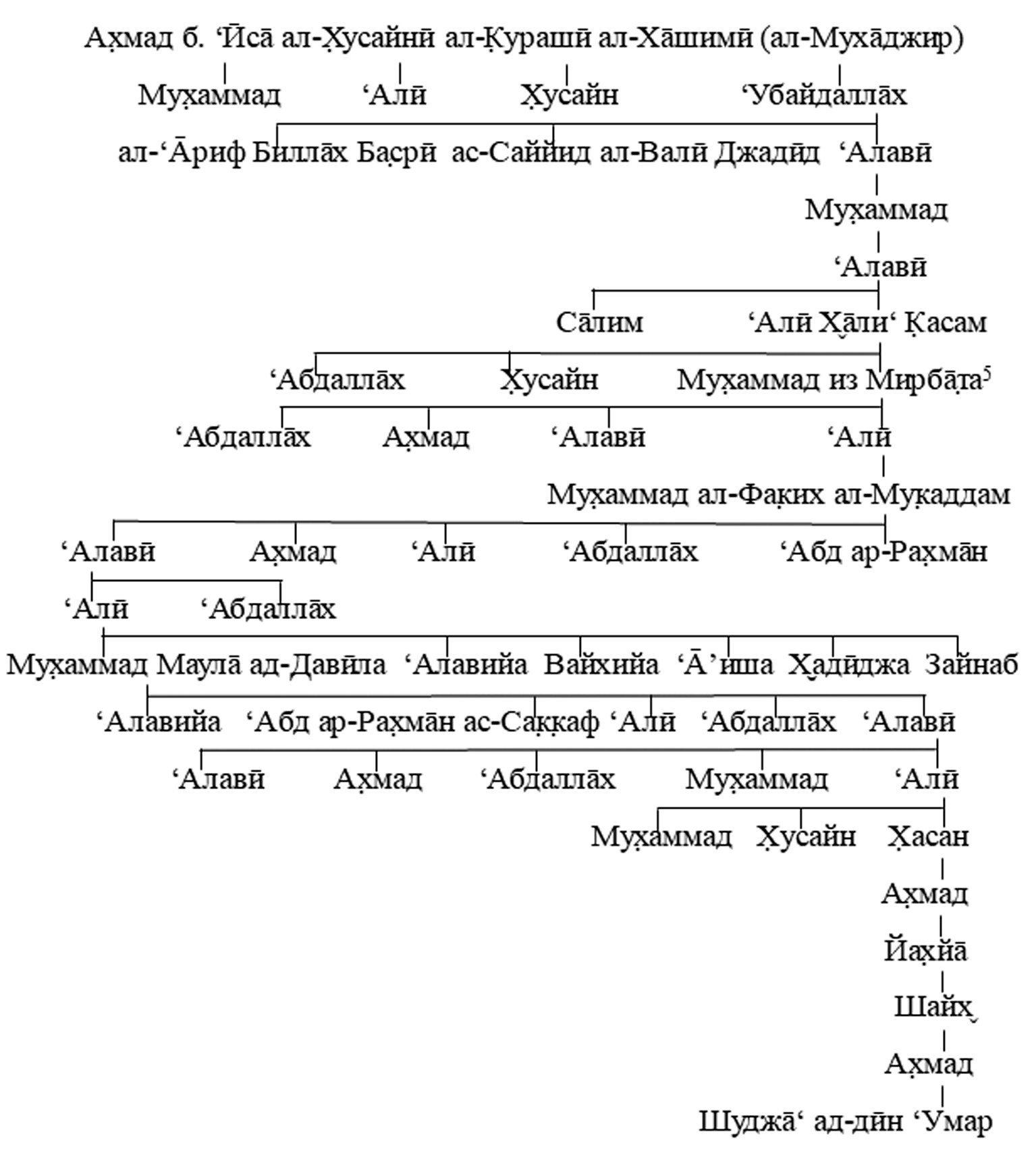 - Al-Mashhūr, ‘Abd al-Raḥmān. Šams al-ẓahīra wa al-ḍāḥiya al-munīra fī nasab āl ‘Alawī. Jeddah: ‘Alim al-Ma‘rifa, 1984 (in Arabic).
