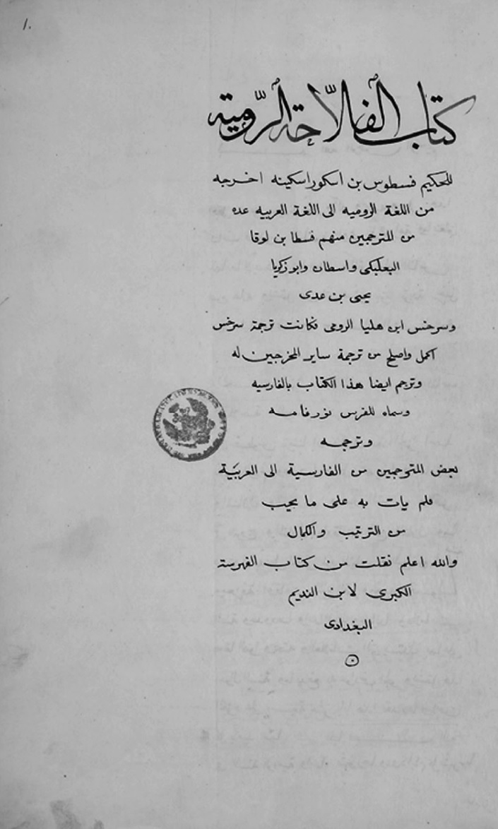 3. Fig. 2. 'Byzantine Agriculture'. IOM RAS. D 147 (679h). fol. 1a. Title page