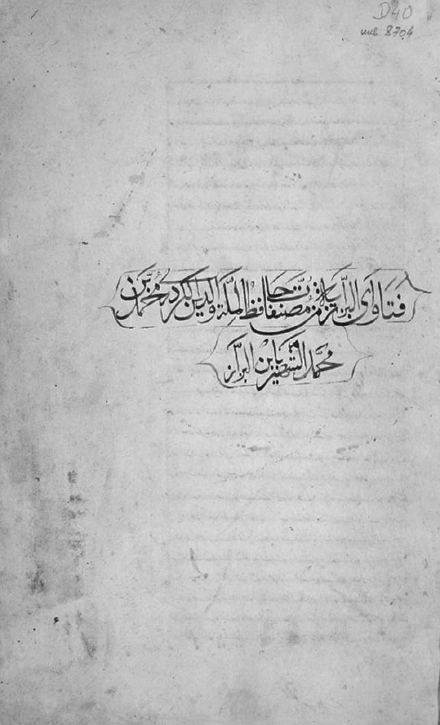 7. Fig. 6. 'Fatwas of al-Bazzaz'. IOM RAS. D 40 (347a). fol. 1a. Title page
