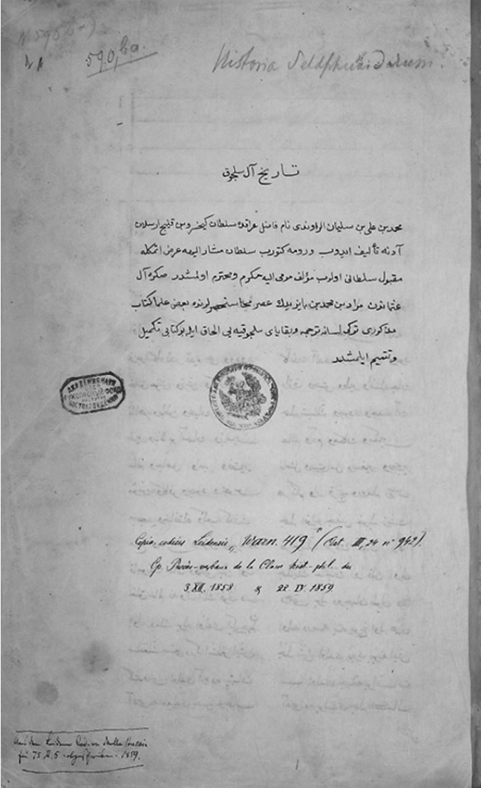 9. Fig. 8. 'History of the House of Seljuks'. IOM RAS. D 116 (590ba). fol. 1a. Title page