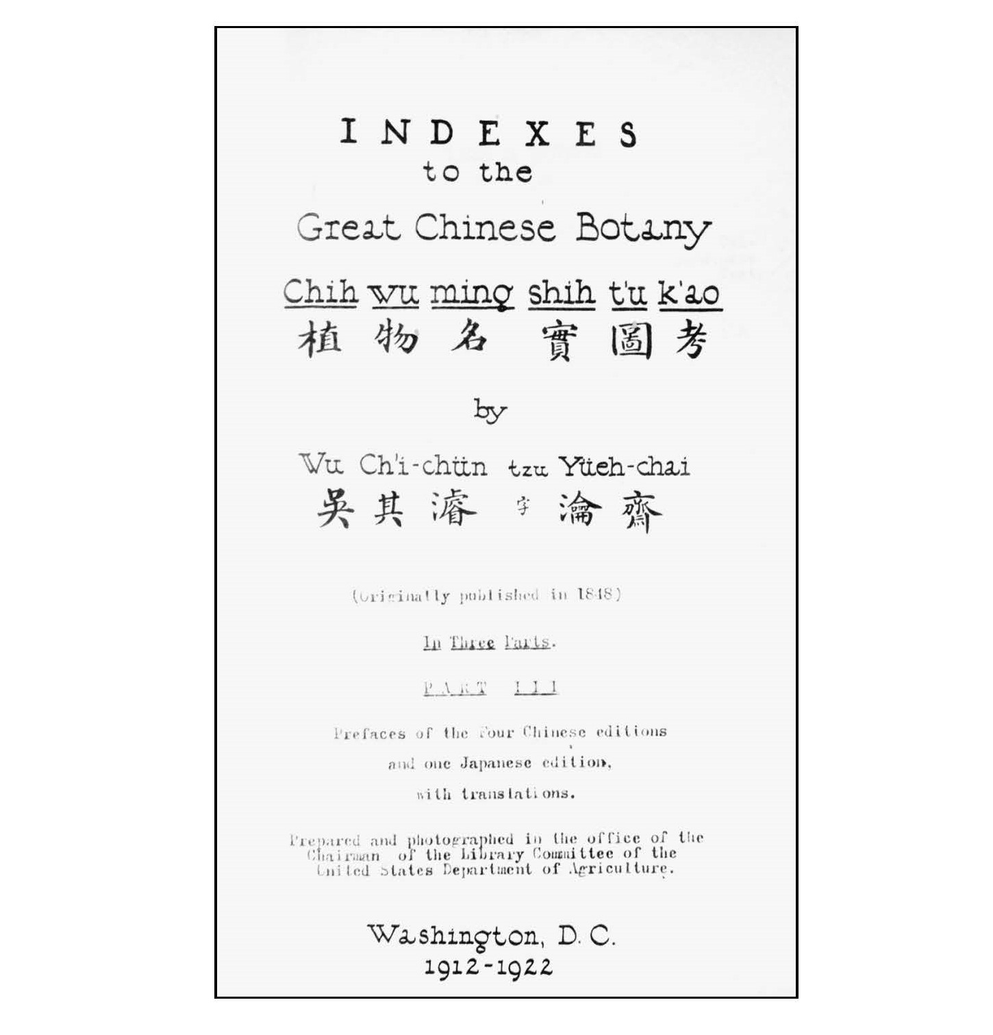 - Wu Qijun 1919 — Zhiwu mingshi tukao. Shanghai: Shangwu yinshuguan, 1919 (in Chinese).