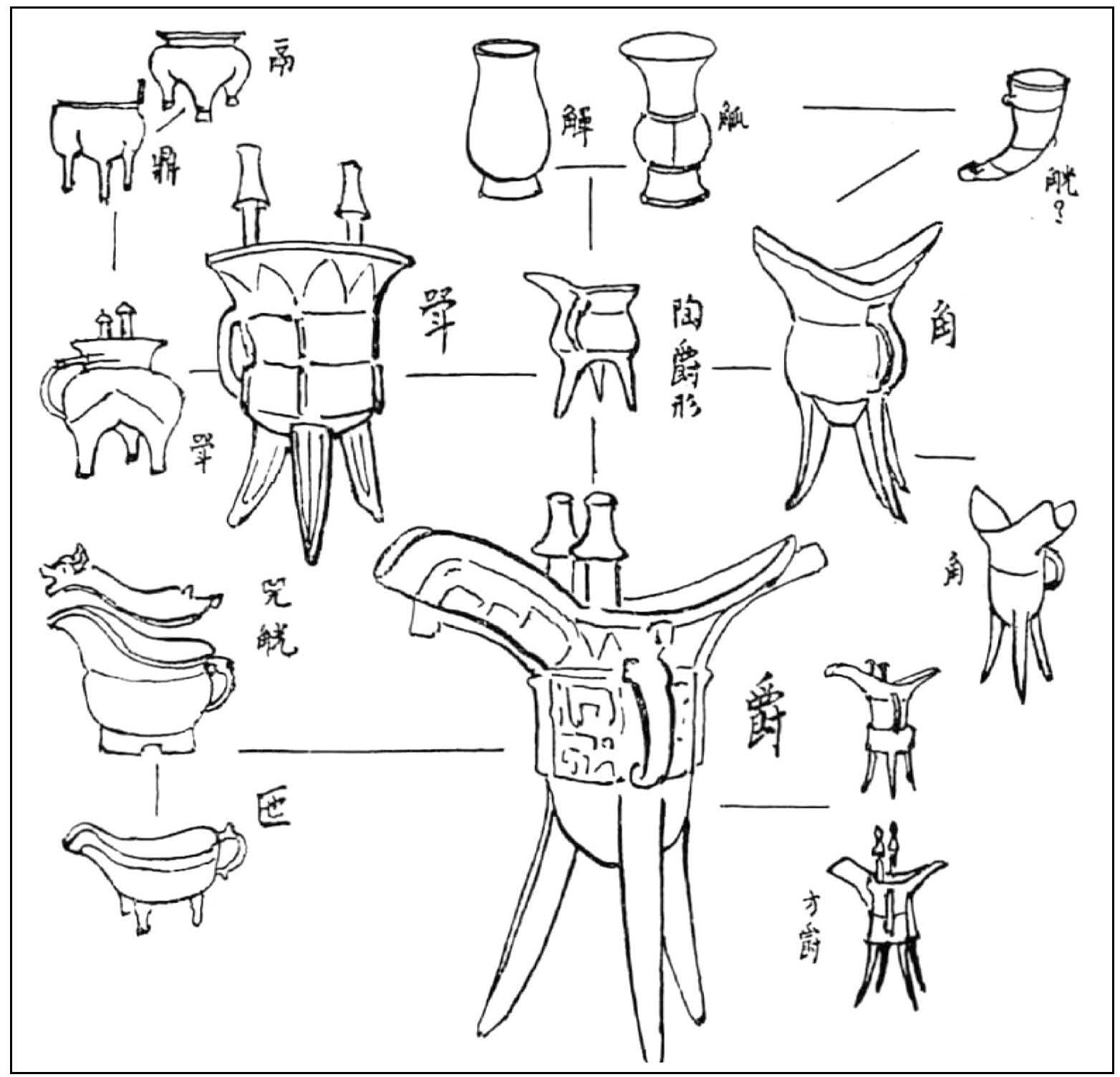 - Hamada Kōsaku 濱田耕作. “Shaku to hai to ni tsuite” 爵と杯とに就いて [*On the jue 爵 and bei 杯]. Tōyōshi ronsō: Ichimura hakushikoki kinen 東洋史論叢:市村博士古稀記念 [*Collection of Papers on Oriental History: Festschrift for the 70th Birthday of Dr. Ichimura]. Ed. by Ichimura hakushikokikinen Tōyōshironsō kankōkai 市村博士古稀記念東洋史論叢刊行會. Tokyo: Fusanbō, 1933, pp. 1047–1068 (in Japanese).