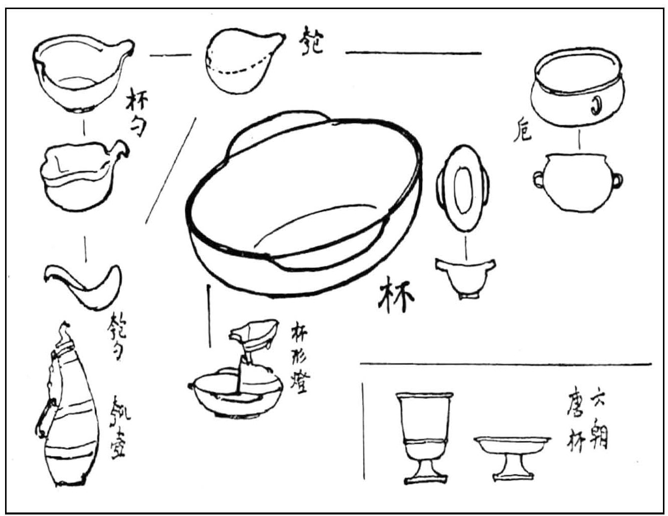 - Yang Zhishui 揚之水. “Wan Tang jinyin jiuqi de mingcheng yu yangshi” 晚唐金銀酒器的名稱與樣式 [*Terminology and Typology of Wine Drinking Vessels in Late Tang Period]. Zhongguo lishi wenwu 中國歷史文物 [Journal of National Museum of China], 2008, vol. 6, pp. 14–24, Plate IV–VIII (in Chinese).