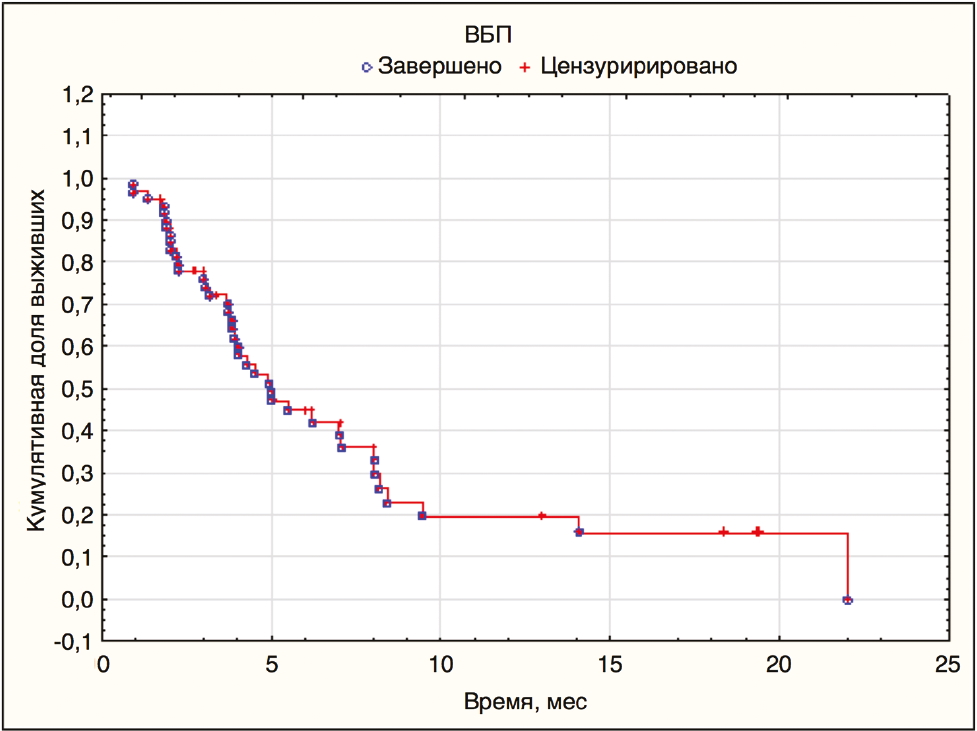 Рис. 3. ВБП при HER2-положительном мРМЖ (n=60).