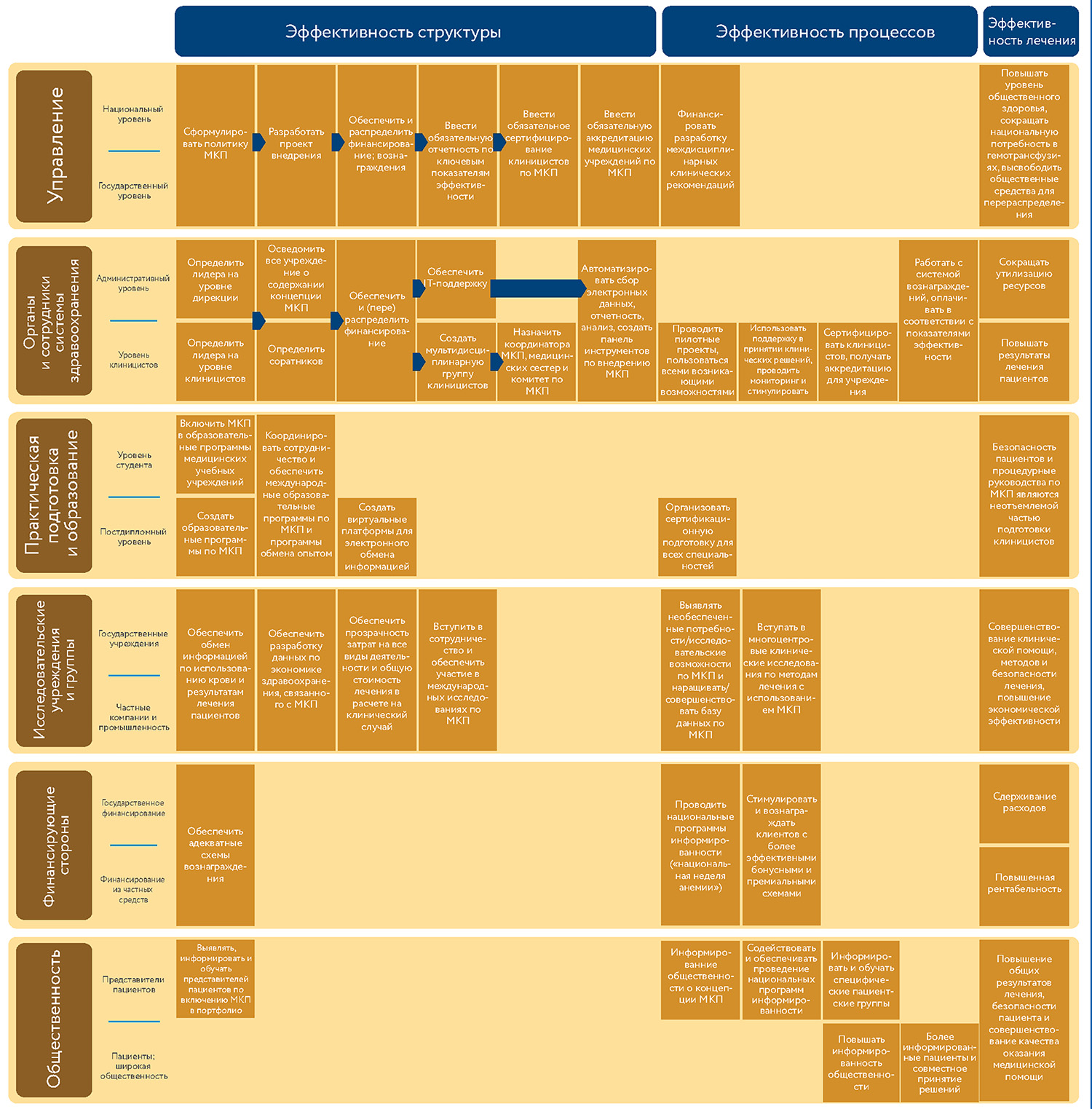Ниже авторы поясняют более подробно обоснования для разработки этой резолюции, очерчивают действия, которые необходимо предпринять, и поясняют, какие преимущества получат все заинтересованные стороны в РФ; предложена дорожная карта по имплементации и подчеркнута поддерживающая роль НАСМКП на этом пути. Более того, группа несколько изменила и адаптировала три традиционные принципа стратегии МКП для того, чтобы сделать МКП более эффективным в онкологической среде (рис. 1Б).
