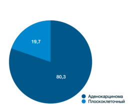 У большинства пациентов – 191/80,3% опухоль имела железистую дифференцировку, а у 47/19,7% – плоскоклеточный рак (рис. 1).