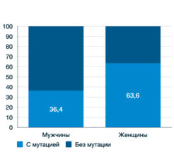 Рис. 2. Частота мутаций при НМРЛ в зависимости от пола (%).