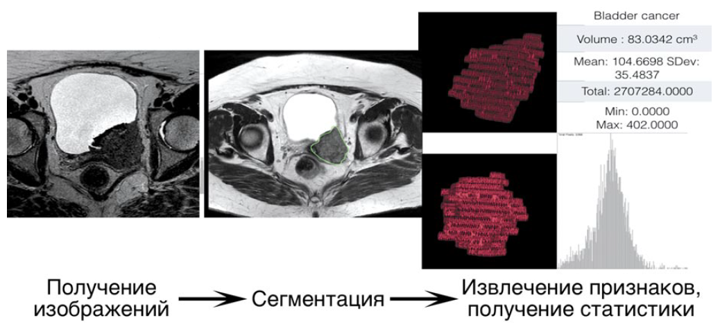 Bladder cancer is one of the most severe and common diseases of genitourinary organs. According to WHO statistics, bladder cancer is the tenth in cancer morbidity structure and the 13th in cancer mortality structure in the world. In Russia, bladder cancer is 11th in cancer morbidity structure and 16th in cancer mortality structure. In most cases, bladder cancer is diagnosed at 65–74 years of age. The 5-year survival rate for stage IV bladder cancer is about 15%. Early detection, correct staging, and management of the patient influence the prognosis and further quality of life. This review shows detection and staging methods of bladder cancer, staging categories based on multiparametric magnetic-resonance imaging with the use of Vesical Imaging-Reporting and Data System (VI-RADS). Illustrations and a brief overview of alternative visualization methods of bladder lesions, and new approaches in assessment of digital medical images, radiomics and radiogenomics, are presented. In the future, these methods should help to determine the biological characteristics of the tumor without taking a biopsy.
